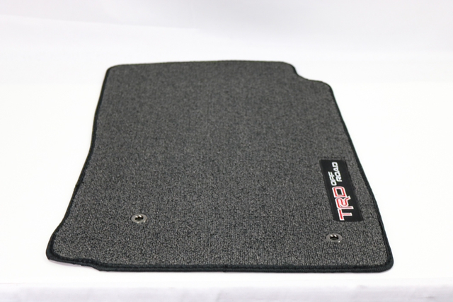 Custom-Tailored for an exact fit to your Tacoma ?s Floor pattern, the carpet Floor mats are constructed of high-grade plush nylon carpet, Color-matched to your vehicle?s Interior and include an embroidered TRD Off Road?Logo. A retention clip helps keep the mats in position, protecting your original carpet from premature wear and stains. They?re also removable and easy to Clean. Fits Tacoma Color: Light Charcoal Logo: TRD To avoid interference with Pedal opeRation: Each mat must be secured with retention hooks (clips). Do not install a Floor mat on top of an existing Floor mat. This Floor mat was designed specifically for use in this model and model year vehicle and SHOULD NOT be used in any other vehicle. Constructed of 18 oz. Color-matched to your vehicle's interior. Protects the original carpet from stains and excessive wear. BCF nylon carpet featuring embroidered vehicle name, aggressive nibs and retention clip.